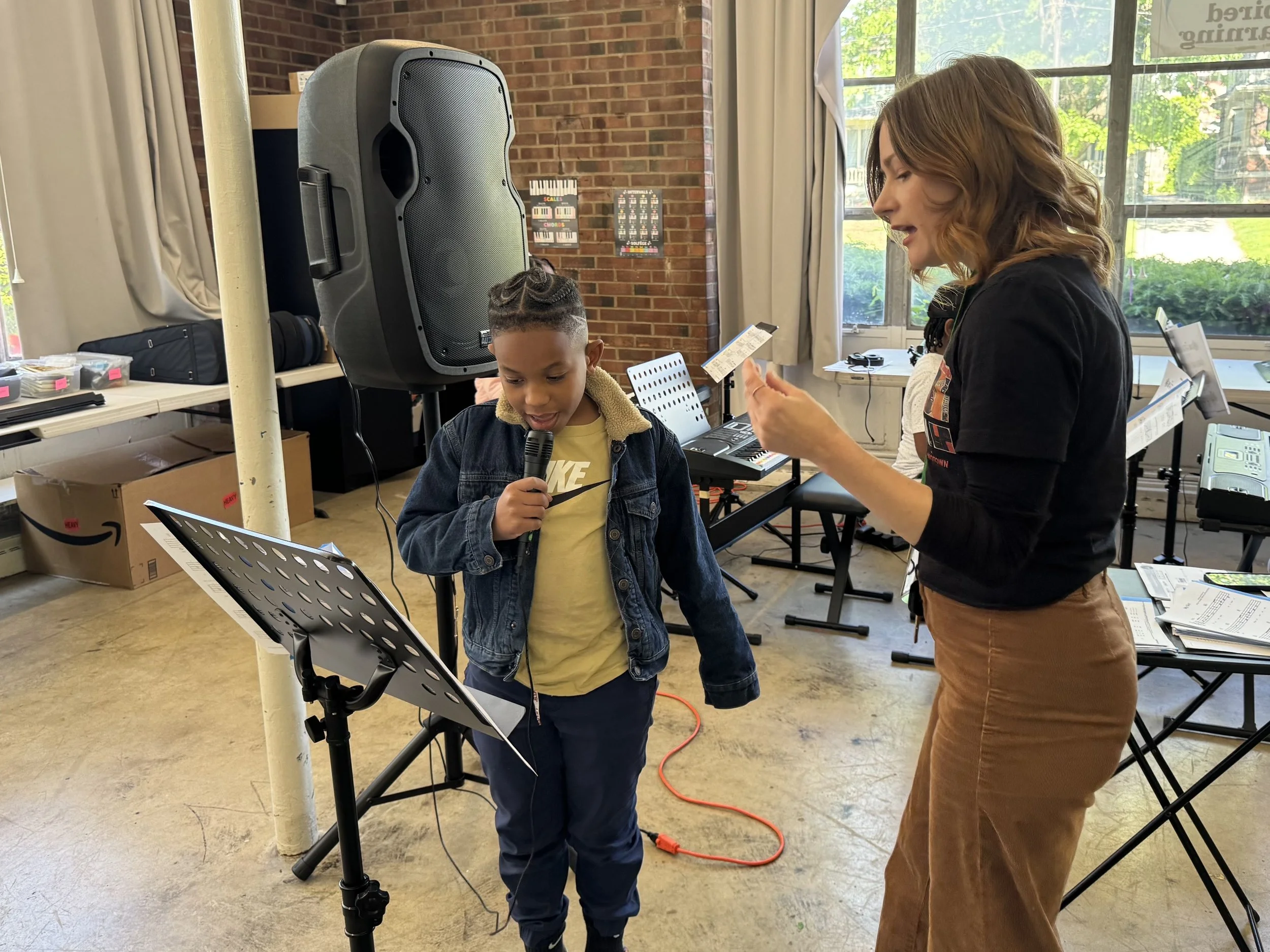 Four kids plucked at their keyboards while another pounded on the xylophone. A young boy crooned the Temptations’ “My Girl,” backed by their instructor, Alyssa Boyd.